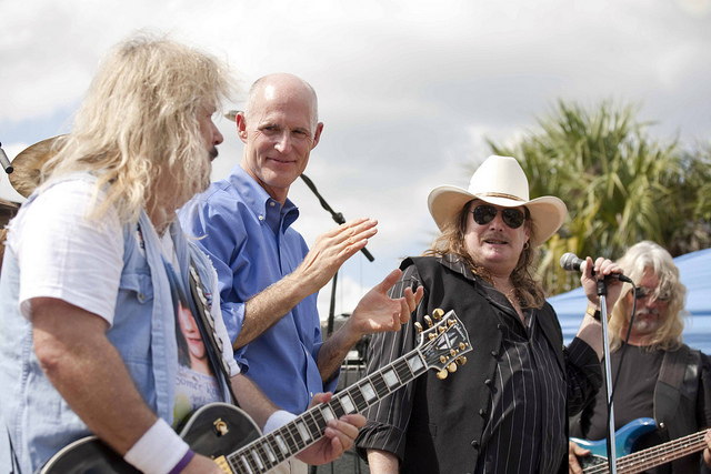 As a Republican candidate, Rick Scott performed with the band Molly Hatchet at a tea party rally in Jacksonville. As Florida's governor, Scott continues to please the tea party crowd. (Photo by Shealah Craighead.)
