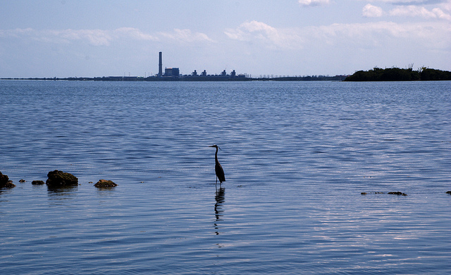 Turkey Point nuclear plant can be seen from Biscayne National Park. Last year, inspectors found that cables used to control reactor valves at Turkey Point were unprotected from fire. (Photo by David Moore.)