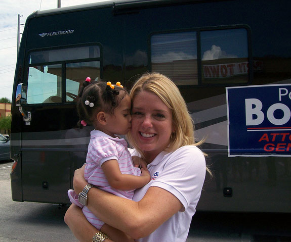 After Pam Bondi (shown here campaigning in August 2010) took office as attorney general, the state forced out two investigators who had led efforts to uncover foreclosure fraud. (Photo courtesy of Pam Bondi.)