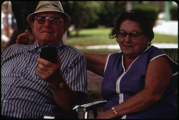 This couple was among the retirees who called South Beach home in the 1970s. But as Miami Beach grew younger, the rest of Florida became much older. (Photo by Flip Schulke, courtesy of U.S. National Archives.)