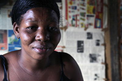 The walls of her room are covered in newspaper and magazine clippings written in English; American celebrities smile out from the pages. Nothing is out of place: A small Bible sits on her pillow and a sheet serves as a curtain separating the kitchen from her bed.