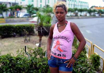 Maribel Galbán, 27, takes a break from her daily work cleaning windshields on the streets of Santo Domingo. Galbán oversees a group of nearly two-dozen street children. At night she works as a prostitute. (Photo by Brandon Quester.)