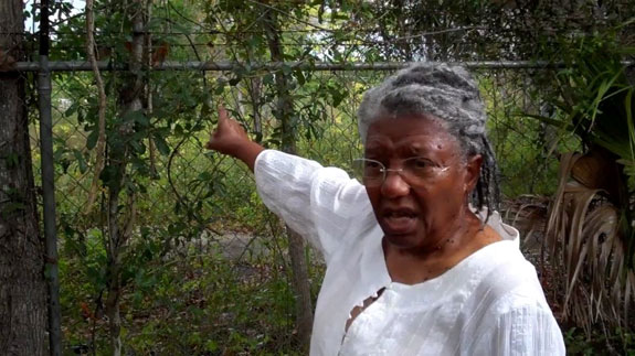Janet Moore, 75, points toward the old Imperial Gas station site in Marion County. Moore’s friend, who died five years ago, owned the property next to the site for 36 years but was never able to drink the well water. (Photo by M.C. Moewe.)