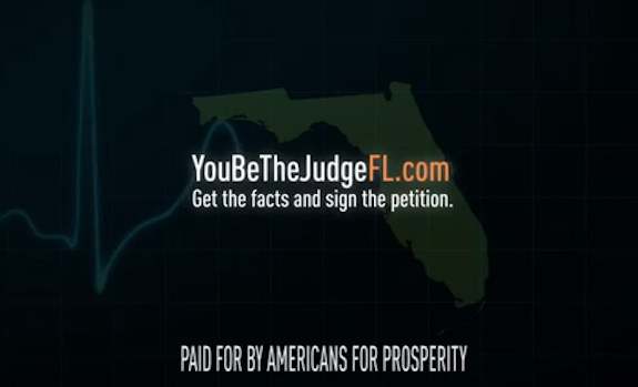 The Koch brothers’ Americans for Prosperity is releasing ads targeting the Florida Supreme Court. (Via Americans for Prosperity Florida YouTube Channel)