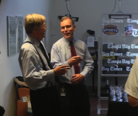 Daniel Ruth and Tim Nickens of the Tampa Bay Times won a Pulitzer Prize for editorial writing. (Photo courtesy of Amy Hollyfield/Twitter.)