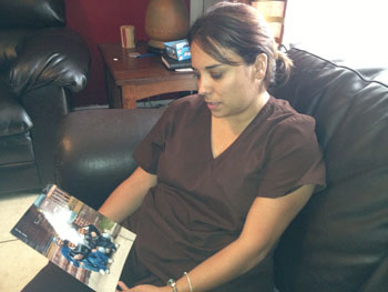 Johanna Williams looks at a family portrait that included her late husband Kenneth. (Photo by Mc Nelly Torres.)