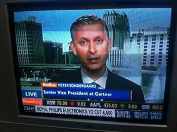 Peter Sondergaard, head of Research for Gartner Inc., discussed technology spending on Bloomberg TV. Sondergaard’s company has received $6 million in economic incentives in Florida. (Photo courtesy of Gartner Inc.)