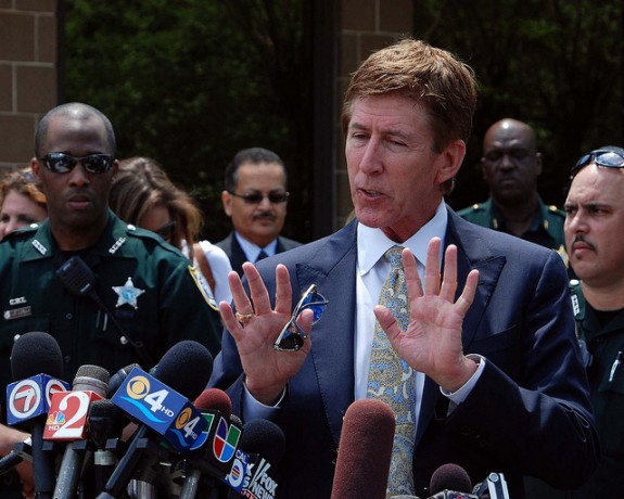Mark O’Mara, George Zimmerman’s defense attorney, talks to reporters. (Photo by Werth Media.)