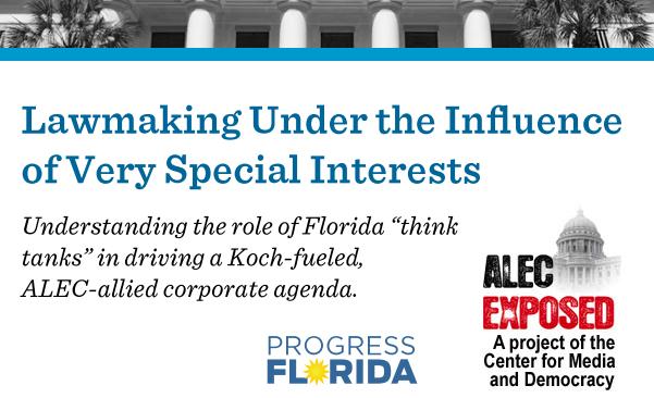 A new report from two left leaning organizations, Progress Florida and the Center for Media and Democracy, highlights how right-wing think tanks tied to The American Legislative Exchange Council (ALEC) and the Koch brothers have been influencing Florida policy.