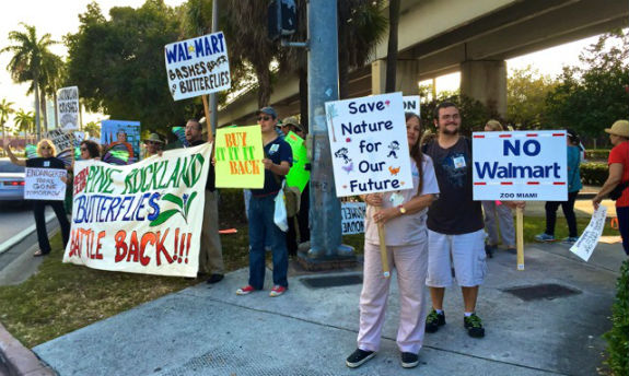 Activists protest outside University of Miami’s main entrance off U.S.1 on Feb. 27. (Photo by Al Sunshine/Miami Pine Rocklands Coalition.)
