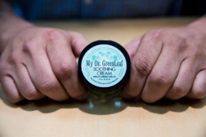 Anthony Anzalone is a New Jersey doctor who paved the way for more than 1,000 of the state’s medical marijuana patients. This “My Dr. Greenleaf” soothing cream, shown here, is just one of the many all-CBD medical marijuana products the doctor and his company sell online. (Photo by Jessie Wardarski/New21.)