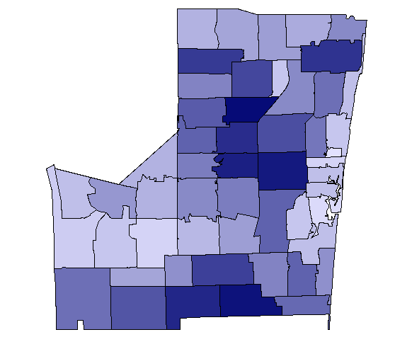 Roll your mouse over each ZIP code to see its calculated foreclosure risk rating. Foreclosure risk ratings are based on the numbers and rates of foreclosures, subprime loans, delinquencies and vacancies. The darker the ZIP code the higher foreclosure needs score.