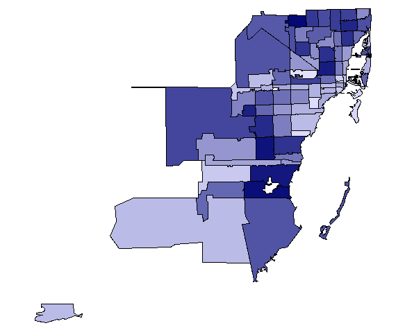 Roll your mouse over each ZIP code to see its calculated foreclosure risk rating. Foreclosure risk ratings are based on the numbers and rates of foreclosures, subprime loans, delinquencies and vacancies. The darker the ZIP code the higher foreclosure needs score.